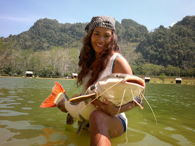 His girlfriend wasn't to be outdone and caught some very nice fish including this Spotted Featherback